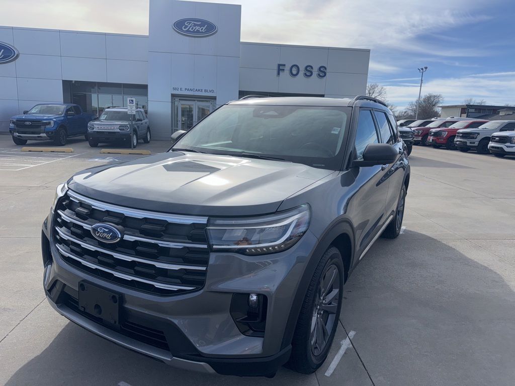 Recent Arrival! CARFAX One-Owner. 2025 Ford Explorer Active 4WD. 20/27 City/Highway MPG Clean CARFAX. 2.3L EcoBoost® I-4 10-Speed Automatic 4WD Active Comfort Package (Front Fascia, Heated ActiveX Seating Material Captain’s Chairs, Heated Steering Wheel, Remote Start System, Second Row HVAC Controls, and Universal Garage Door Opener (UGDO)), Equipment Group 200A Standard Package, 4WD, 2nd Row 35/30/35 Bench w/E-Z Entry & Armrest, 3.58 Non-Limited Slip Rear Axle, 3rd Row seats: bench, 4-Wheel Disc Brakes, 6 Speakers, ABS brakes, Air Conditioning, Alloy wheels, AM/FM radio: SiriusXM with 360L, AM/FM Stereo, Apple CarPlay/Android Auto, Auto High-beam Headlights, Automatic temperature control, Brake assist, Bumpers: body-color, Compass, Delay-off headlights, Driver door bin, Driver vanity mirror, Dual front impact airbags, Dual front side impact airbags, Electronic Stability Control, Emergency communication system: 911 Assist, Exterior Parking Camera Rear, Four wheel independent suspension, Front & 2nd Rows Floor Liners w/o Carpet Floor Mats, Front anti-roll bar, Front Bucket Seats, Front Center Armrest, Front dual zone A/C, Front License Plate Bracket, Front reading lights, Fully automatic headlights, Heated door mirrors, Heated front seats, Illuminated entry, Internet access capable: FordPass Connect 5G, Knee airbag, Leather steering wheel, Low tire pressure warning, Navigation System, Occupant sensing airbag, Outside temperature display, Overhead airbag, Overhead console, Panic alarm, Panoramic Vista Roof w/Power Shade, Passenger door bin, Passenger vanity mirror, Power door mirrors, Power driver seat, Power Liftgate, Power passenger seat, Power steering, Power windows, Rear air conditioning, Rear anti-roll bar, Rear reading lights, Rear window defroster, Rear window wiper, Remote keyless entry, Security system, Speed control, Speed-sensing steering, Speed-Sensitive Wipers, Split folding rear seat, Spoiler, Steering wheel mounted audio controls, Tachometer, Telescoping steering wheel, Tilt steering wheel, Traction control, Trip computer, Unique Heated Cloth Captain’s Chairs, Variably intermittent wipers, Wheels: 18″ Sparkle Silver-Painted Aluminum, and Wheels: 20″ Carbonized Gray-Painted Aluminum.